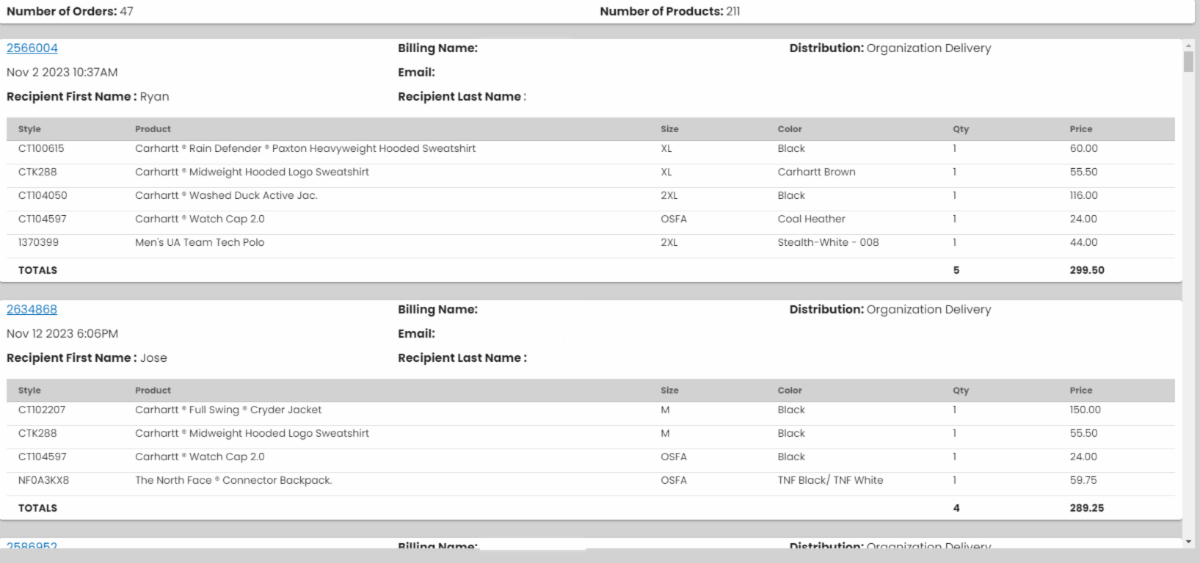 2) The Order Details report will be displayed on the page. You also have the ability to export this as a .pdf or CSV.